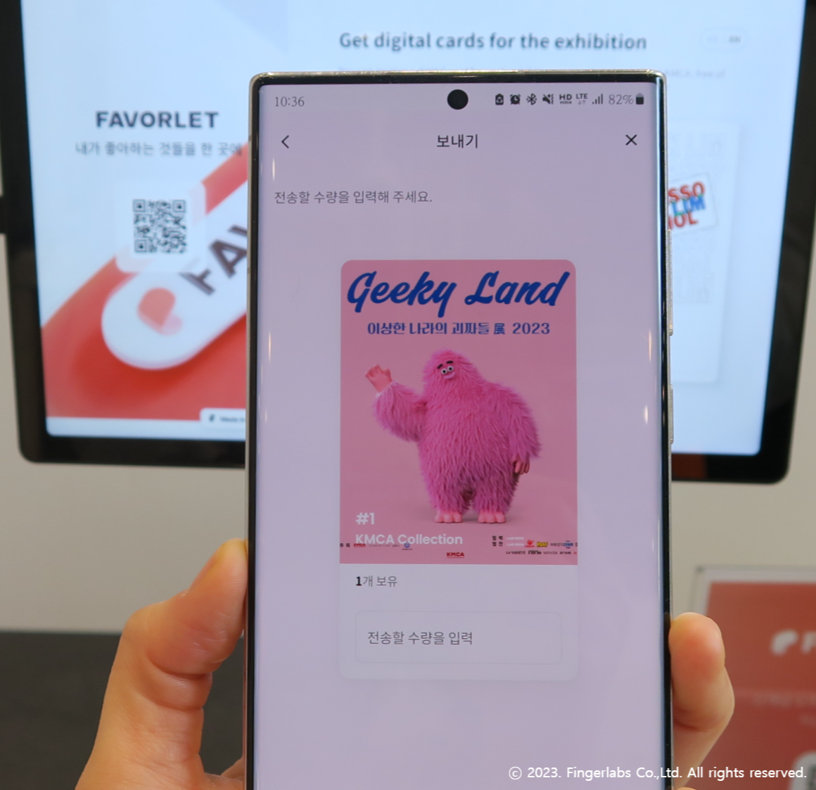 티켓을 교환하며 페이버렛 애플리케이션 다운로드 내역을 보여주고 현재 이벤트 진행중인 전시회 카드와 엽서 수령도 완료 하였어요. 디지털 포스터 카드와 실물 포스터 카드를 다 얻게 되다니 기존 서비스와 신기술 서비스의 만남을 몸소 체험하는 기분이었습니다.