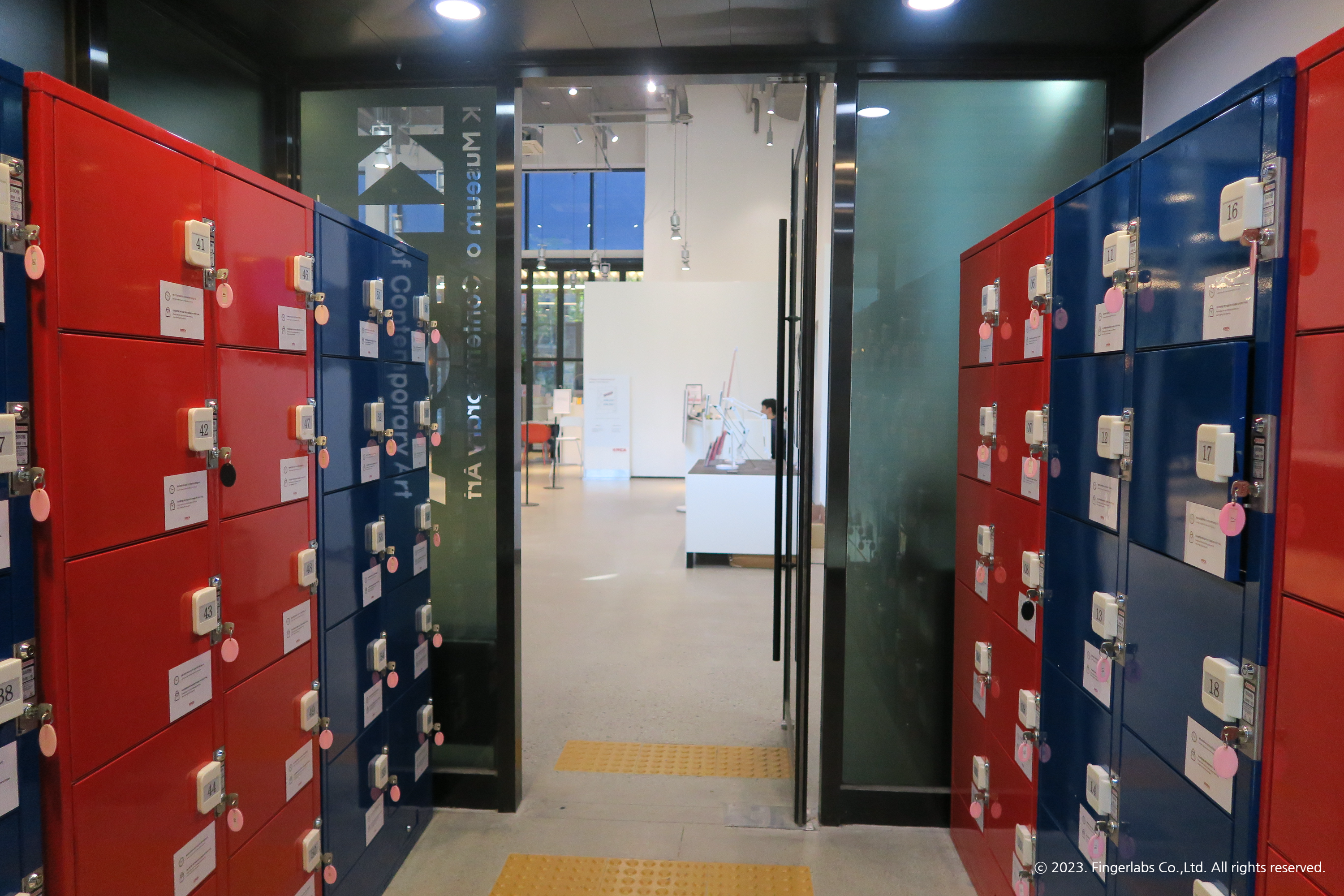 압구정로데오역 근처에 자리 잡고 있는 K현대미술관에 도착했습니다. 도심 한가운데에 있는 미술관이 낭만적이기도 하고 신기하기도 합니다. 입구는 회전문과 일반문 2가지 인데요, 일반문을 들어가면 물품보관소가 바로 마련되어 있습니다. 저 안쪽으로 로비와 티켓박스가 보이는데요, 그 옆에 페이버렛 부스도 위치하고 있습니다.