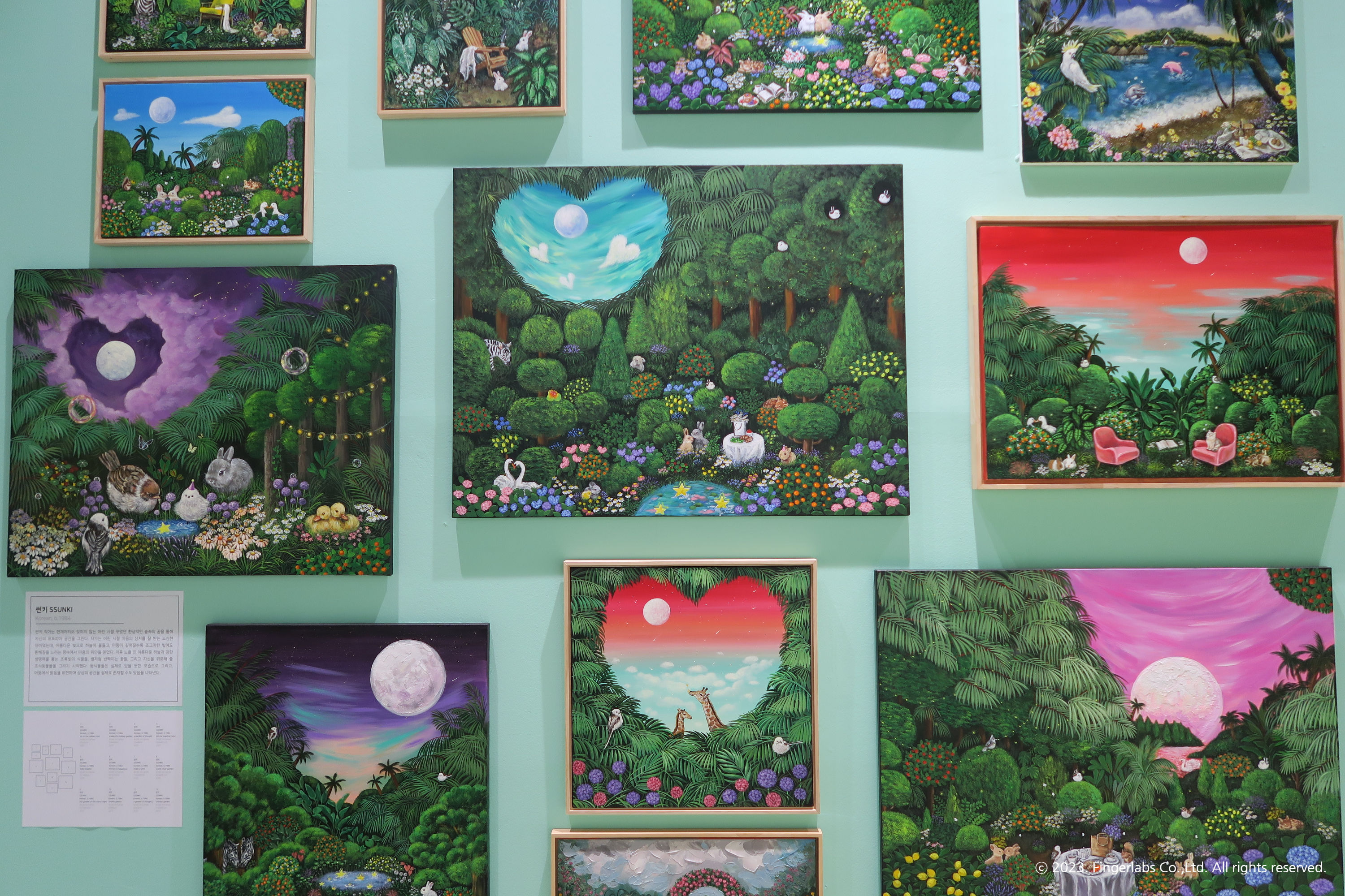 괴짜전에 좋은 작품이 많다는 호평을 많이 들어 기대를 잔뜩 했는데요, 역시 개성있는 작가들이 많아 보는 재미가 쏠쏠했습니다. 회화 뿐만 아니라 일러스트, 설치, 그래피티 등 다양한 작품이 많아 시간 가는 줄 모르고 관람하게 되었어요. 구매를 원한다면 바로 그 자리에서 구매를 할 수도 있었는데, 내 공간에 이 작품이 있으면 어떨까? 싶은 명작이 여럿 있었습니다.