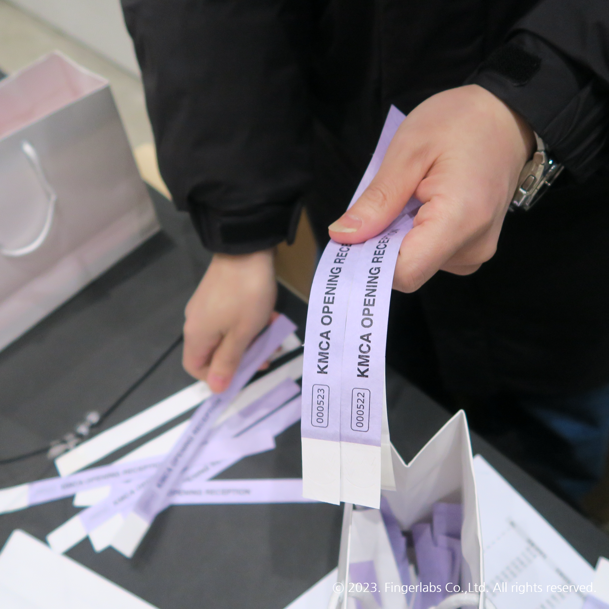 설치되어 있는 페이버렛 부스에서도 QR 인식을 통한 입장이 가능했어요. 페이버랫 앱으로 초대권 확인이 완료된 분들은 팔찌 배부를 통해 빠르고 자유로운 출입이 가능하도록 도와드렸고요.